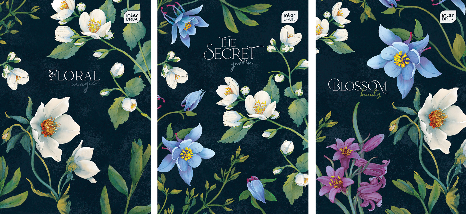 A set of floral illustrations for product design, created for Interdruk (Poland).