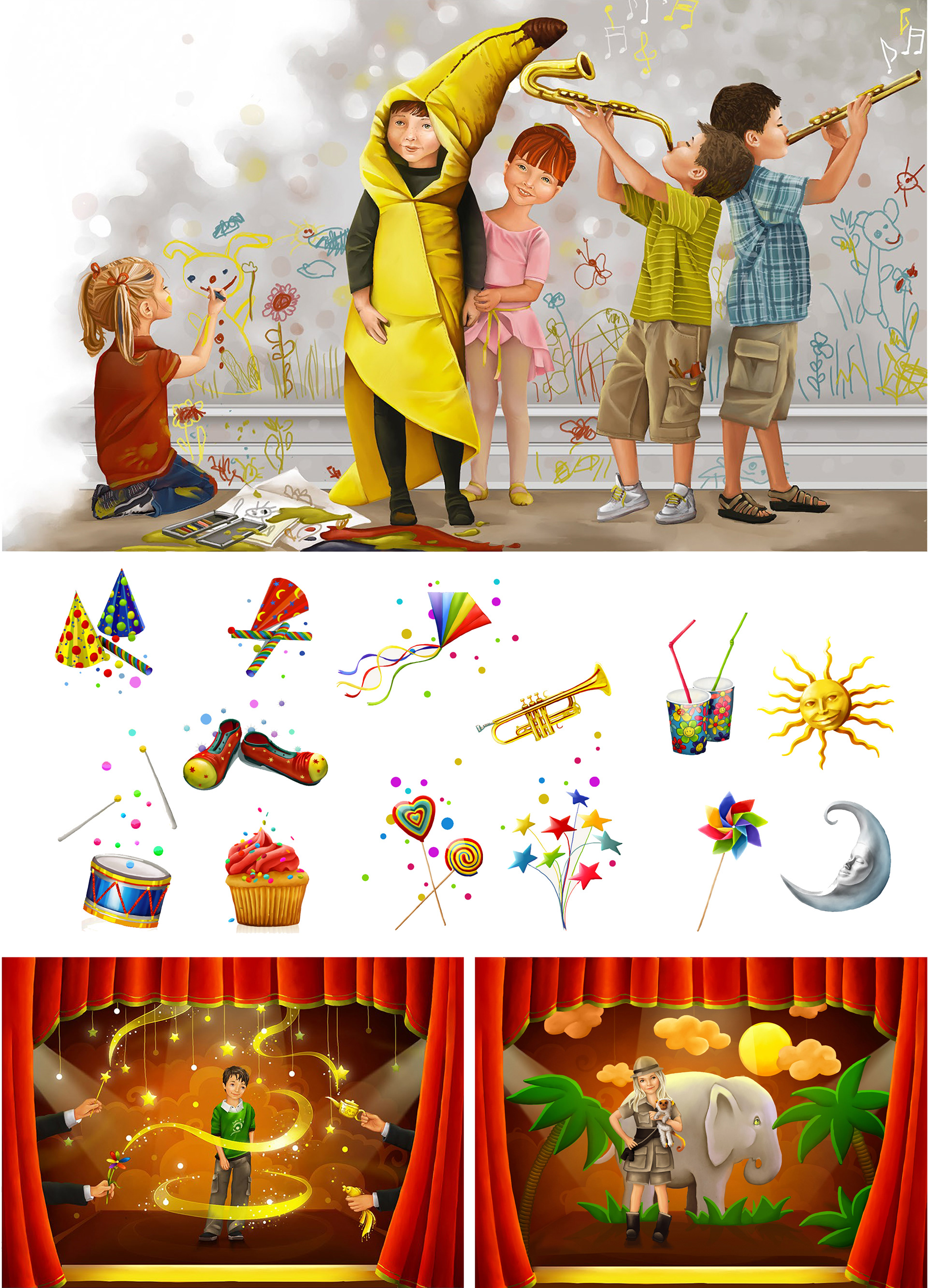 Some illustrations I’ve created for Magic Castle, a children’s event organization, are painted digitally to capture and enhance the magical atmosphere on their website.