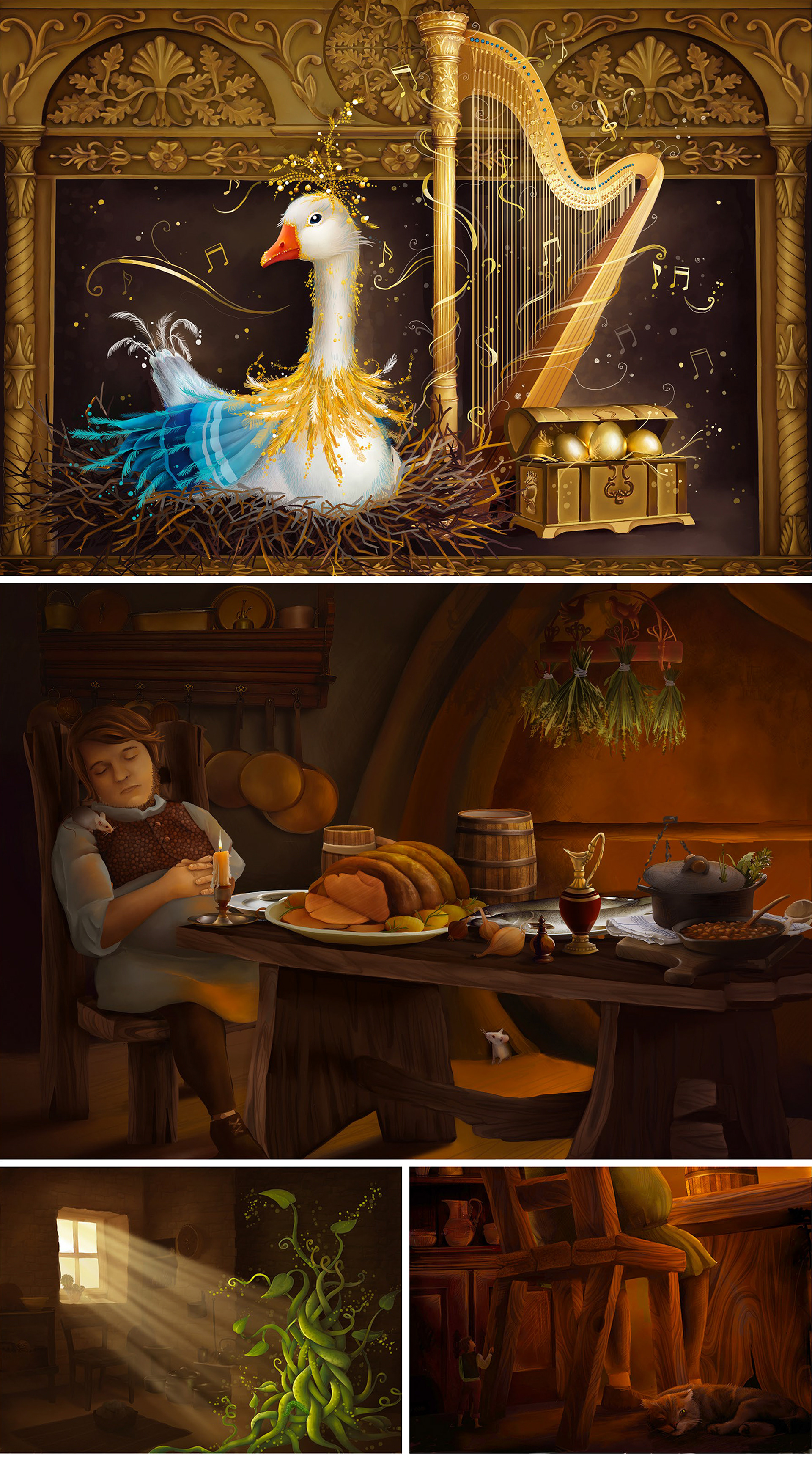 A series of illustrations for the Jack and the Beanstalk game concept, created to explore the ideas, themes, and overall visual style of the game while preserving the magic of the original fairy tale.