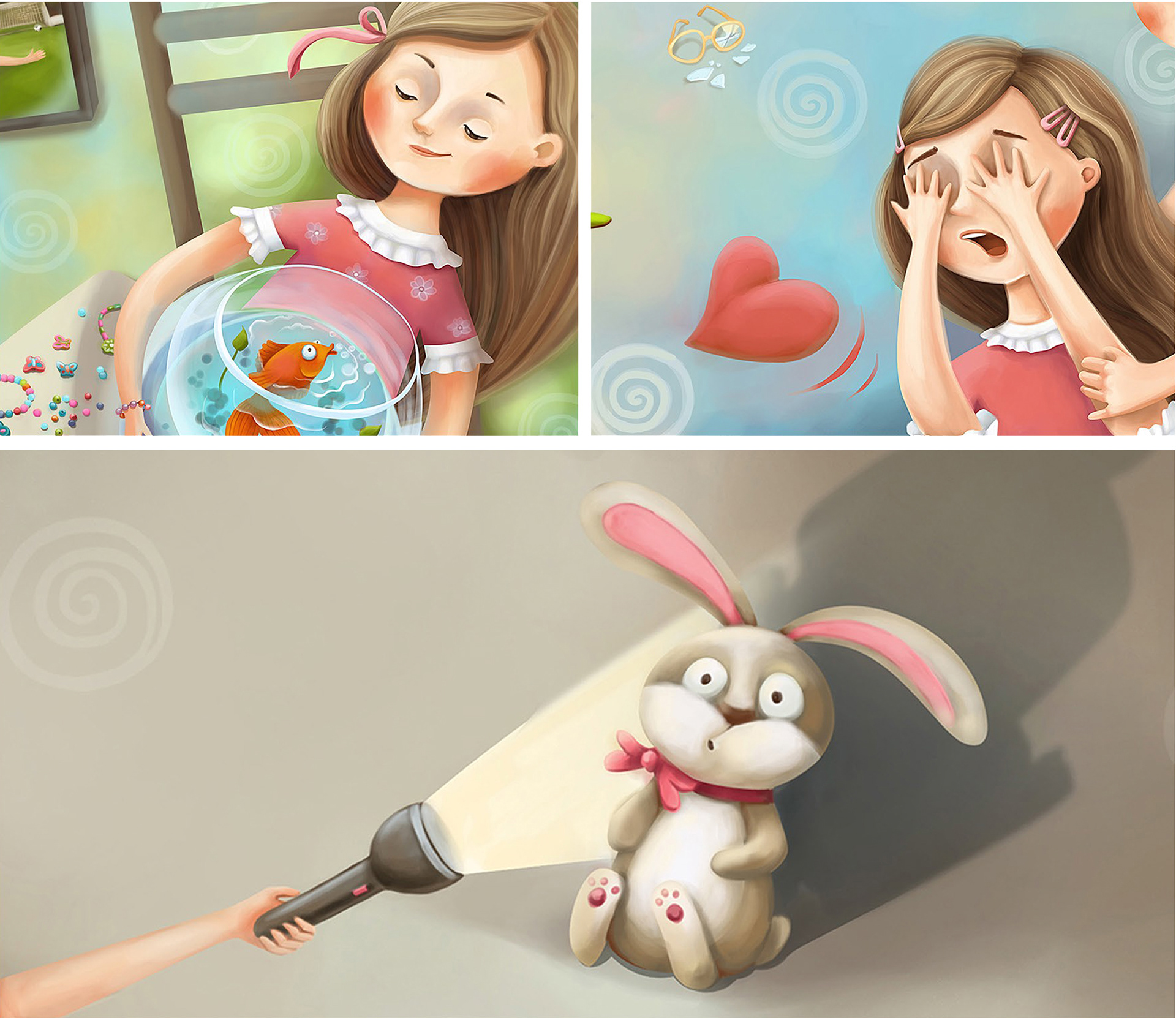 The illustrations were created for a children’s book aimed at helping young readers understand that feeling fear is natural and normal, and to inspire them to find healthy and mindful ways to manage this emotion.