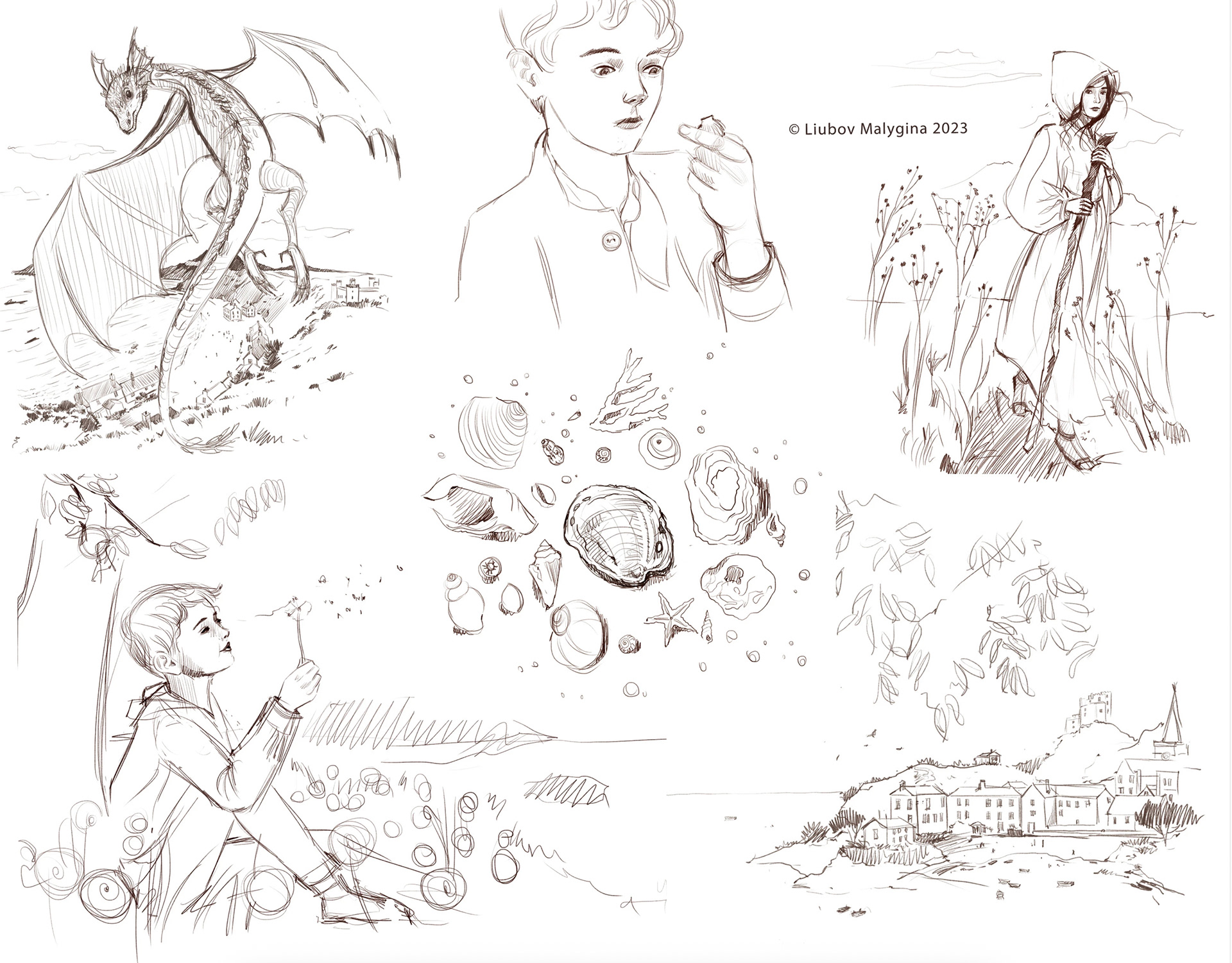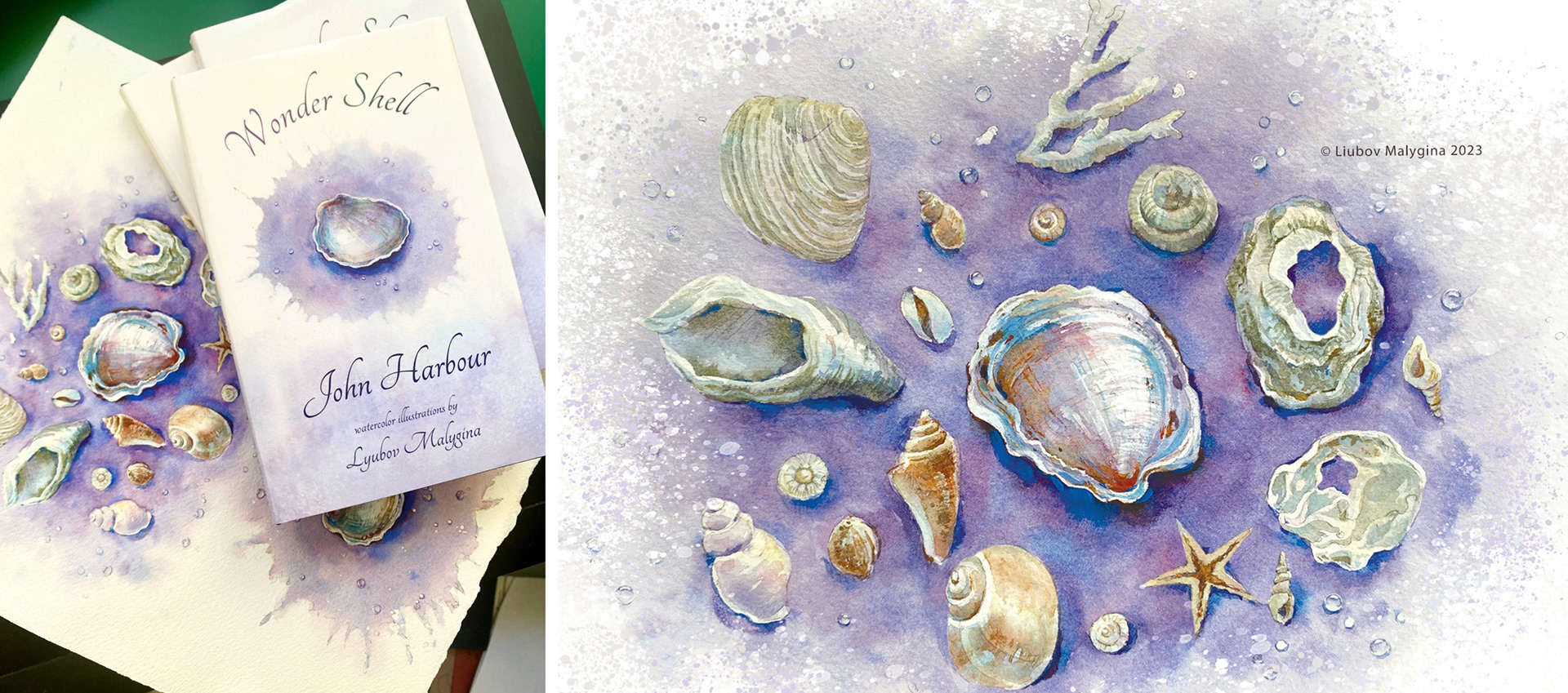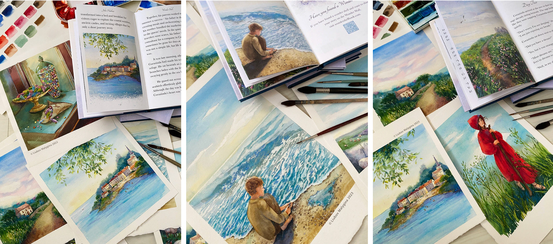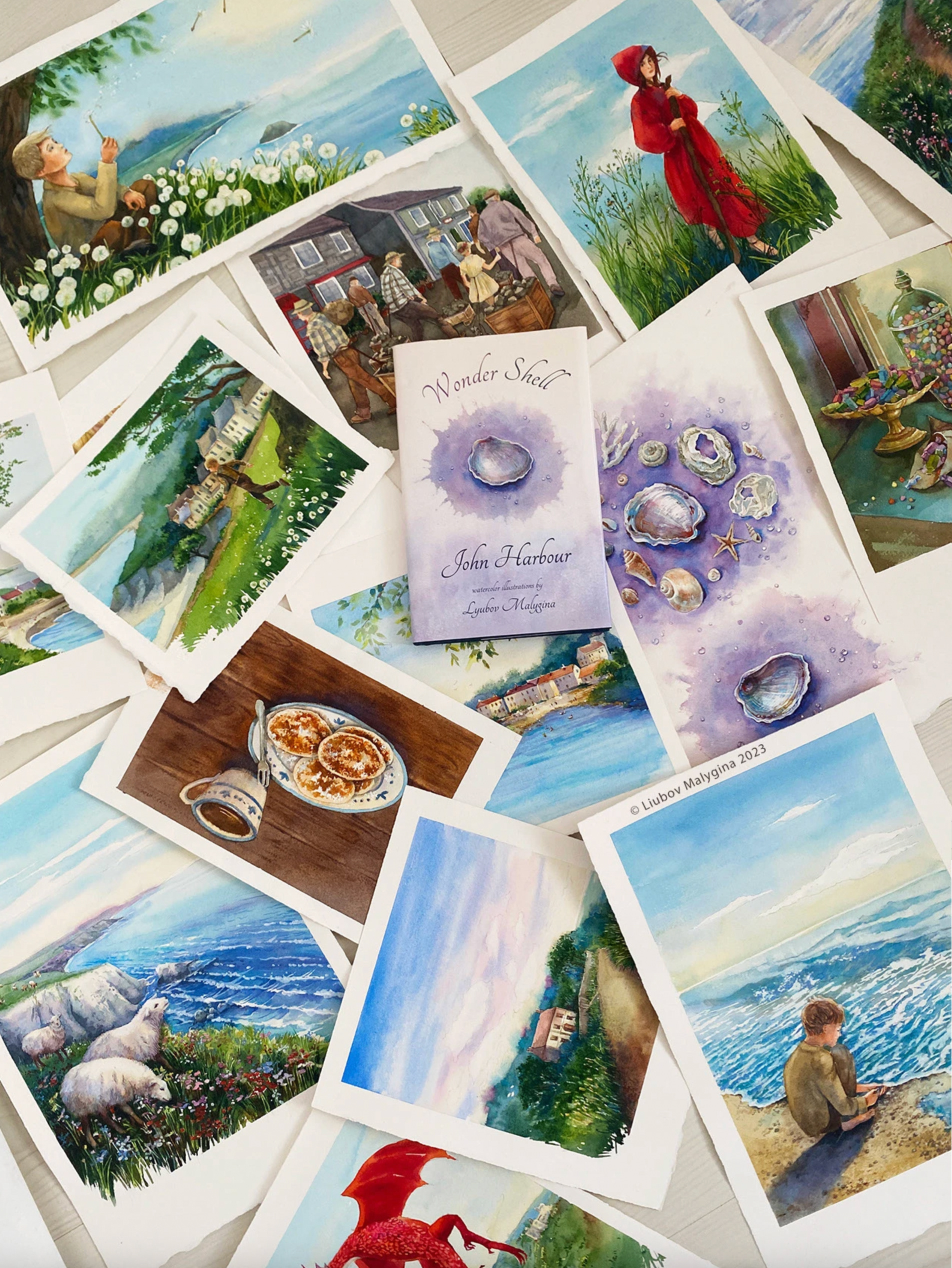 The watercolor illustrations I created for the children’s book Wonder Shell open a world of delicate landscapes where imagination intertwines with emotional depth. During the creative process, I immersed myself in the study of sea treasures, exploring the forms, textures, and colors of shells, uncovering the small stories and hidden rhythms of nature within each one. These observations became the book’s visual language, gentle, breathing, and filled with light.